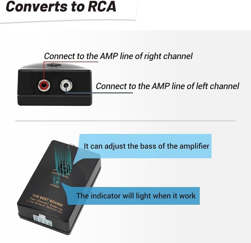 - Lightweight RCA Converter with Gain Adjustment for Custom Car Audio Experience