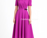 - Lilac Midi Dress Kate Middleton Style A-Line Crepe Twist Bodice Ruffle Sleeve