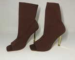 - Liliana Brown Fabric Knit Sock High Heel Peep Toe Stiletto Booties Size 10