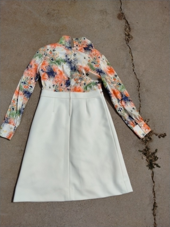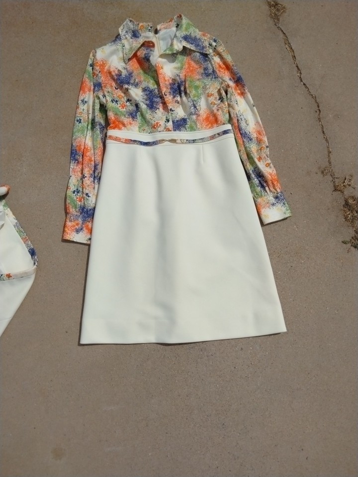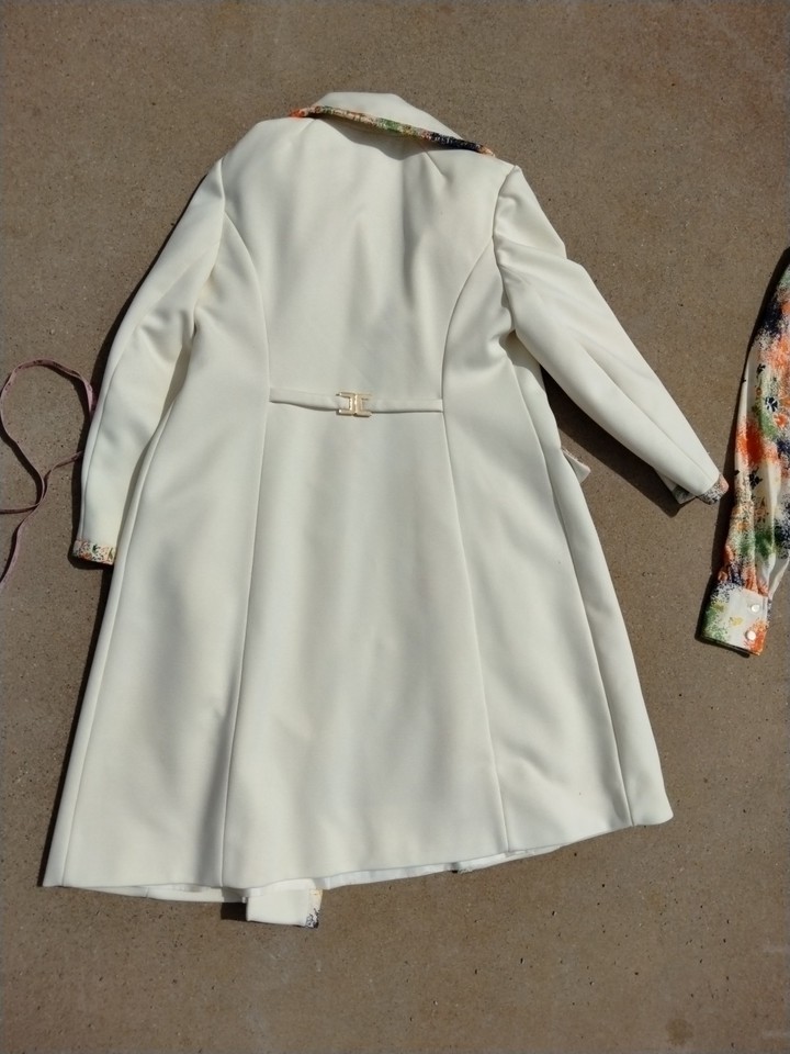 - Lilli Ann Knit Vtg. Cream Mod Long Jacket Coat Matching Dress Lined Medium