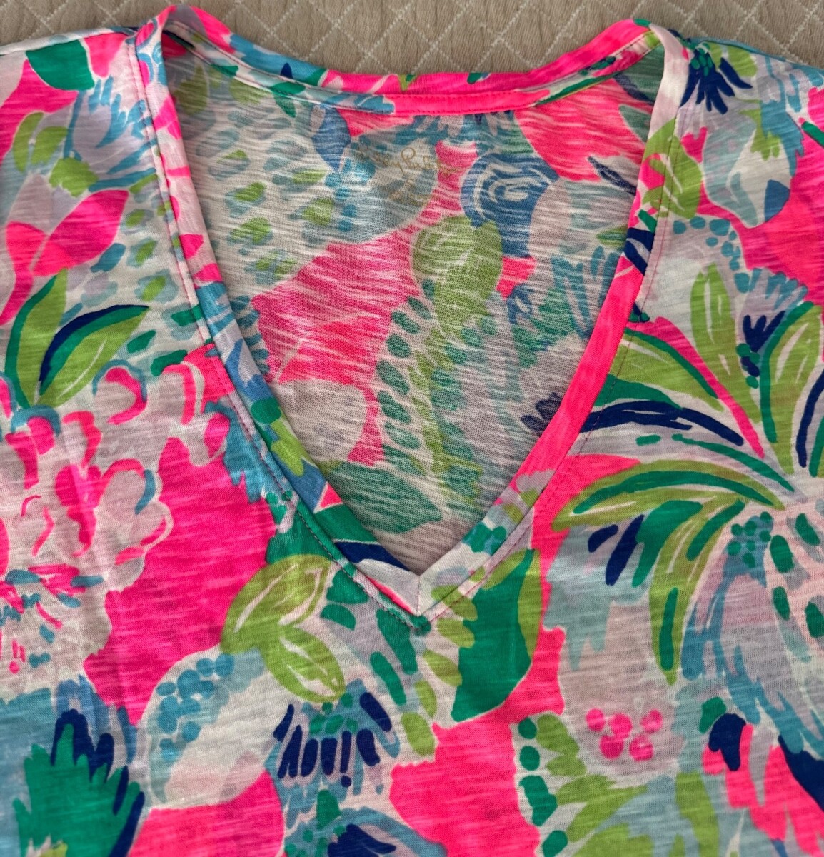 - Lilly Pulitzer Etta V-Neck T-Shirt Raise The Bar Pink Pineapple Size S NWOT