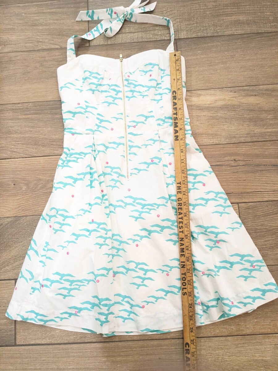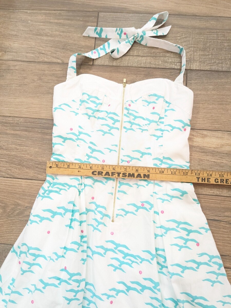 - Lilly Pulitzer Marisa Flock of Seagulls Halter Dress sz 0 white teal pink womens