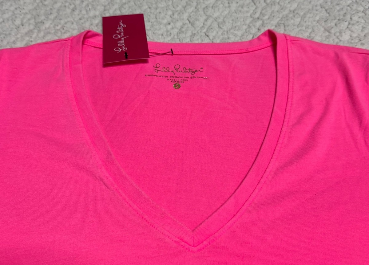- Lilly Pulitzer Shirt Women's Hot Pink V Neck Short Sleeve Palm Logo Tee Size S