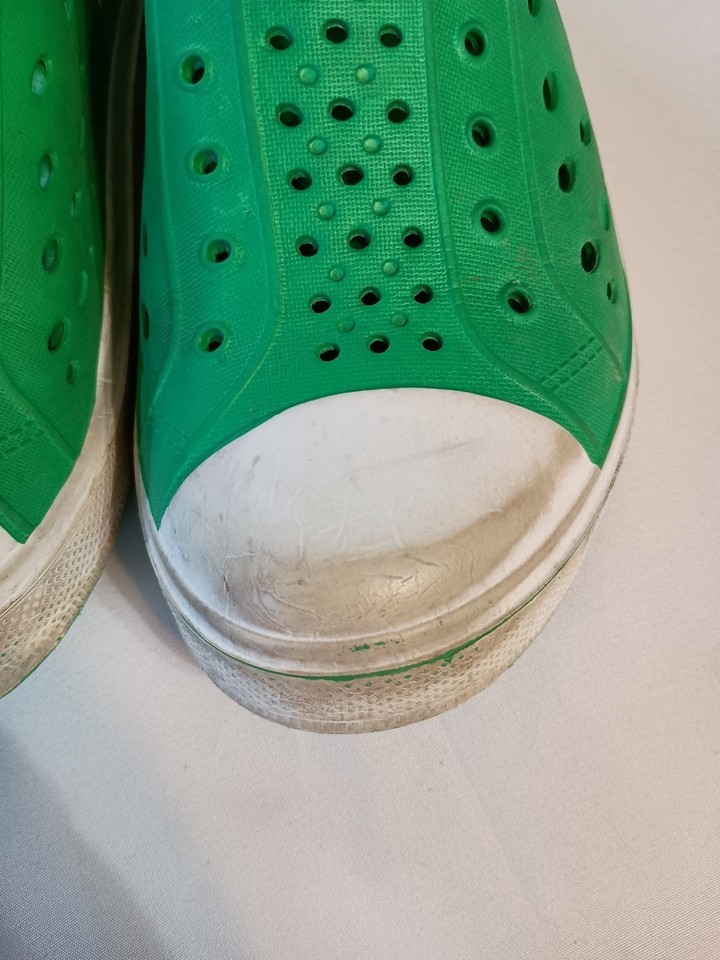 Get your little one ready for summer with these Lily Dan Boys or Girls Green Rubber Slip-On shoes. These shoes are perfect for beach day, fishing, and travel. The slip-resistant and lightweight design provides comfort that are perfect for the hot summer months. The breathable and make them suitable for fall and spring as well. Get your child ready for adventure with these stylish and comfortable shoes. Normal wear.