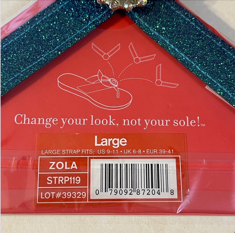 New in package. Zola. Size large. They are a blue green teal sparkle bling. They give off beach mermaid vibes. Super pretty! Straps only, NO shoes. Please see all gallery photos. We are a smoke free, pet friendly home. Have a great day!