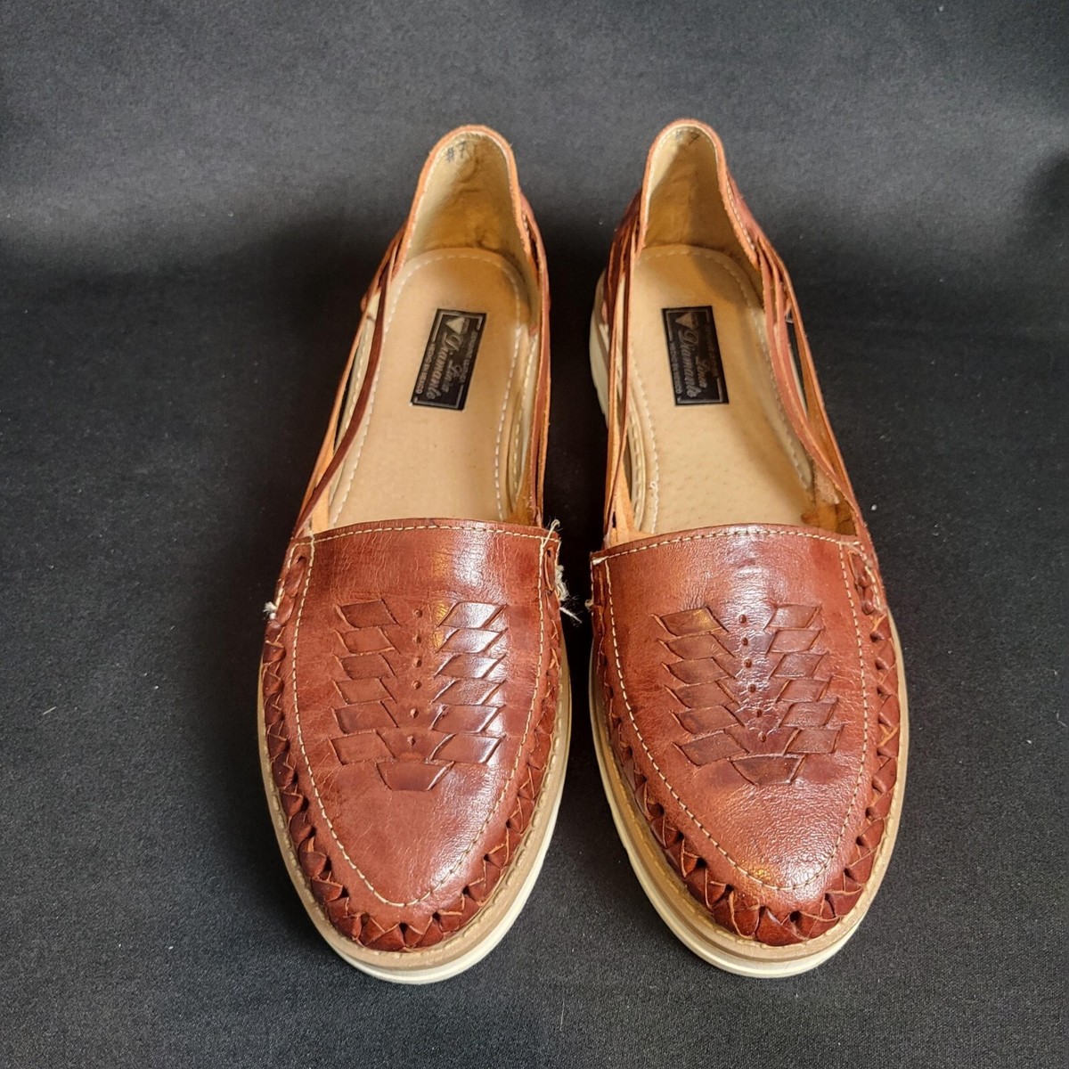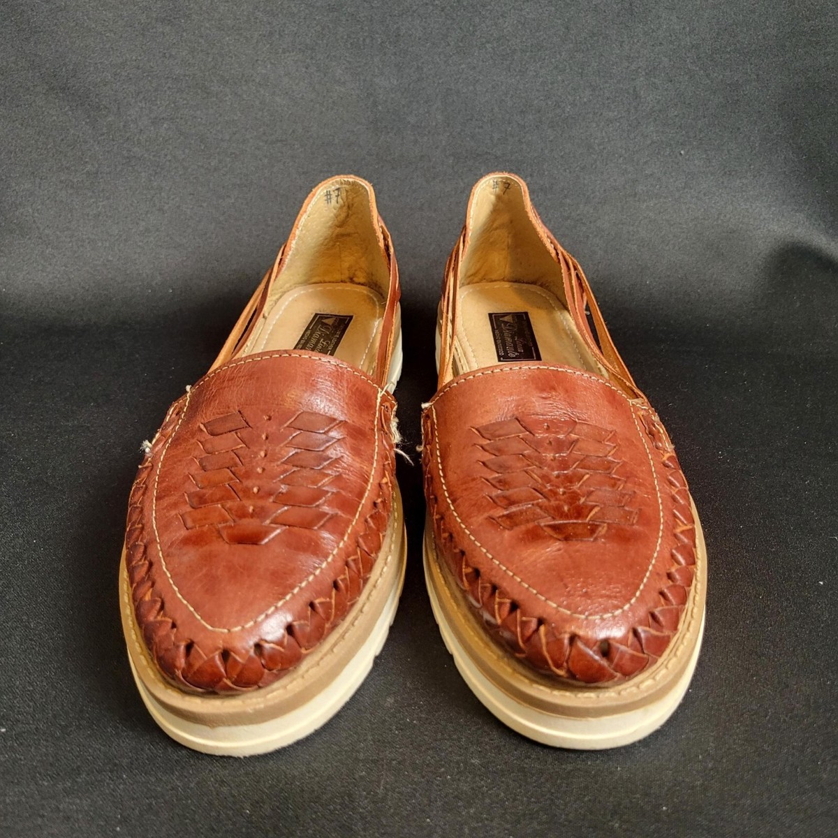 - Linea Diamante Huarache Brown Espadrill Leather Woven Shoes Slip On sz 10 Artist