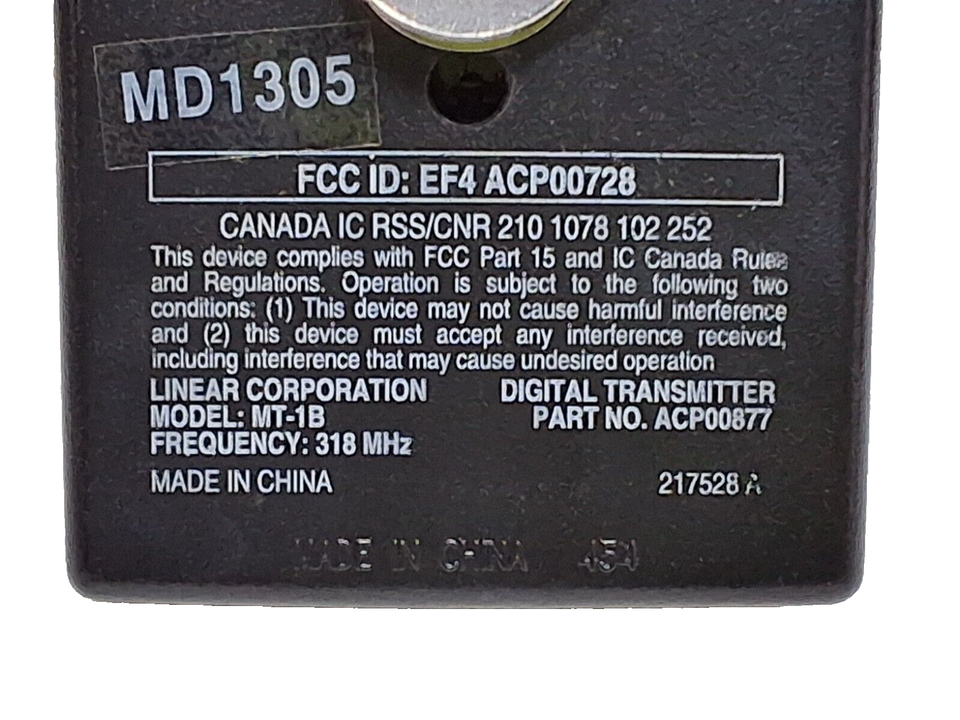 - Linear single button garage door and gate remote opener MT-1B ACP00877