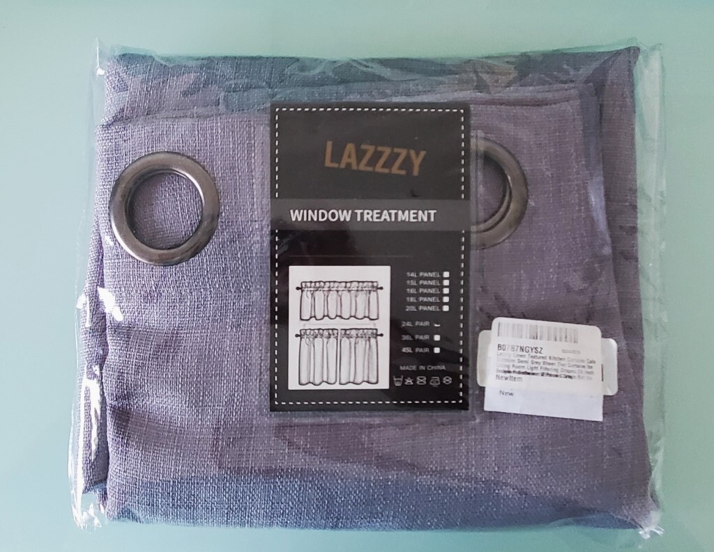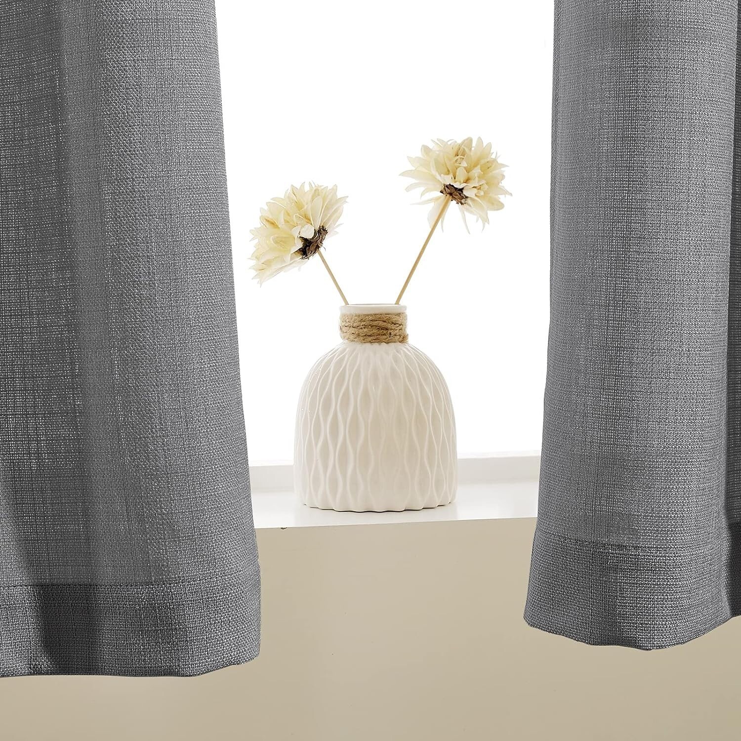 Lazzzy Linen Textured Kitchen Curtains - Cafe Curtains - Light Filtering - 24 Inch Length