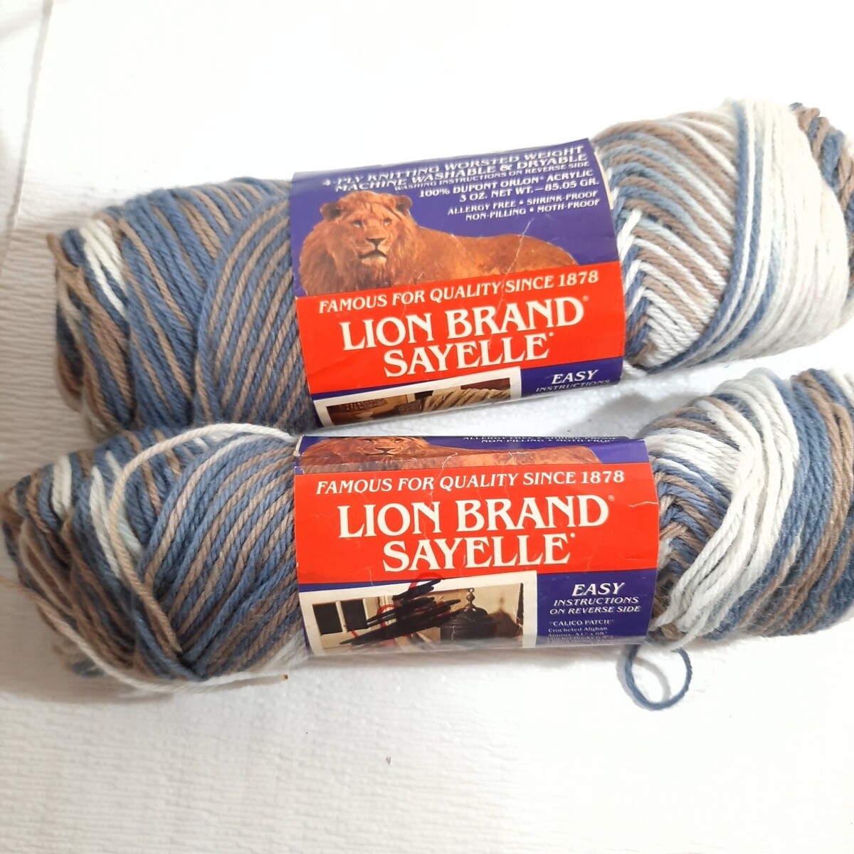 - Lion Brand Sayelle yarn x2 #254 Wedgewood ombre blue grey tan brown variegated