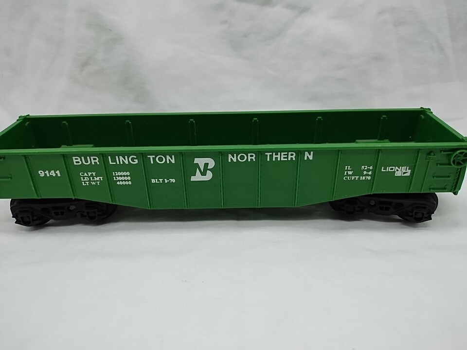 - Lionel Green Burlington Northern Flat Gondola 9141 Train Car O Gauge