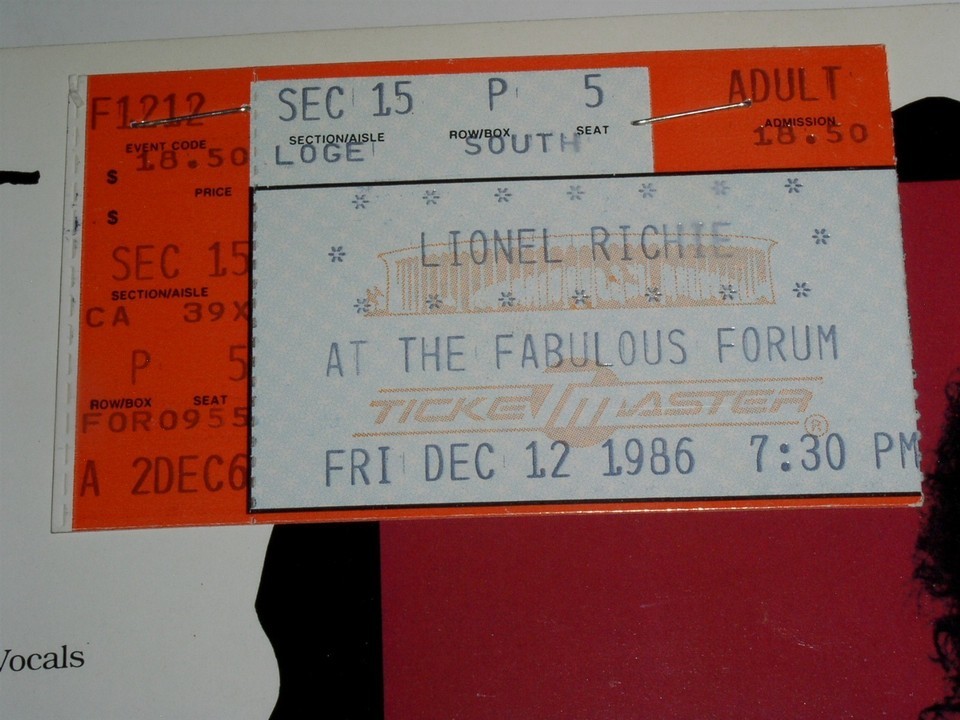 - Lionel Richie Concert Tour Program Vintage 1986 Ticket Stub VG++