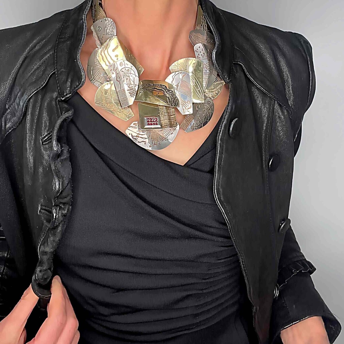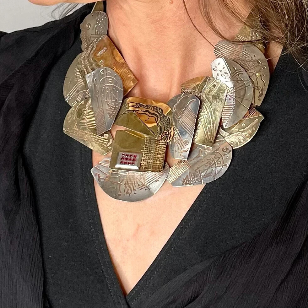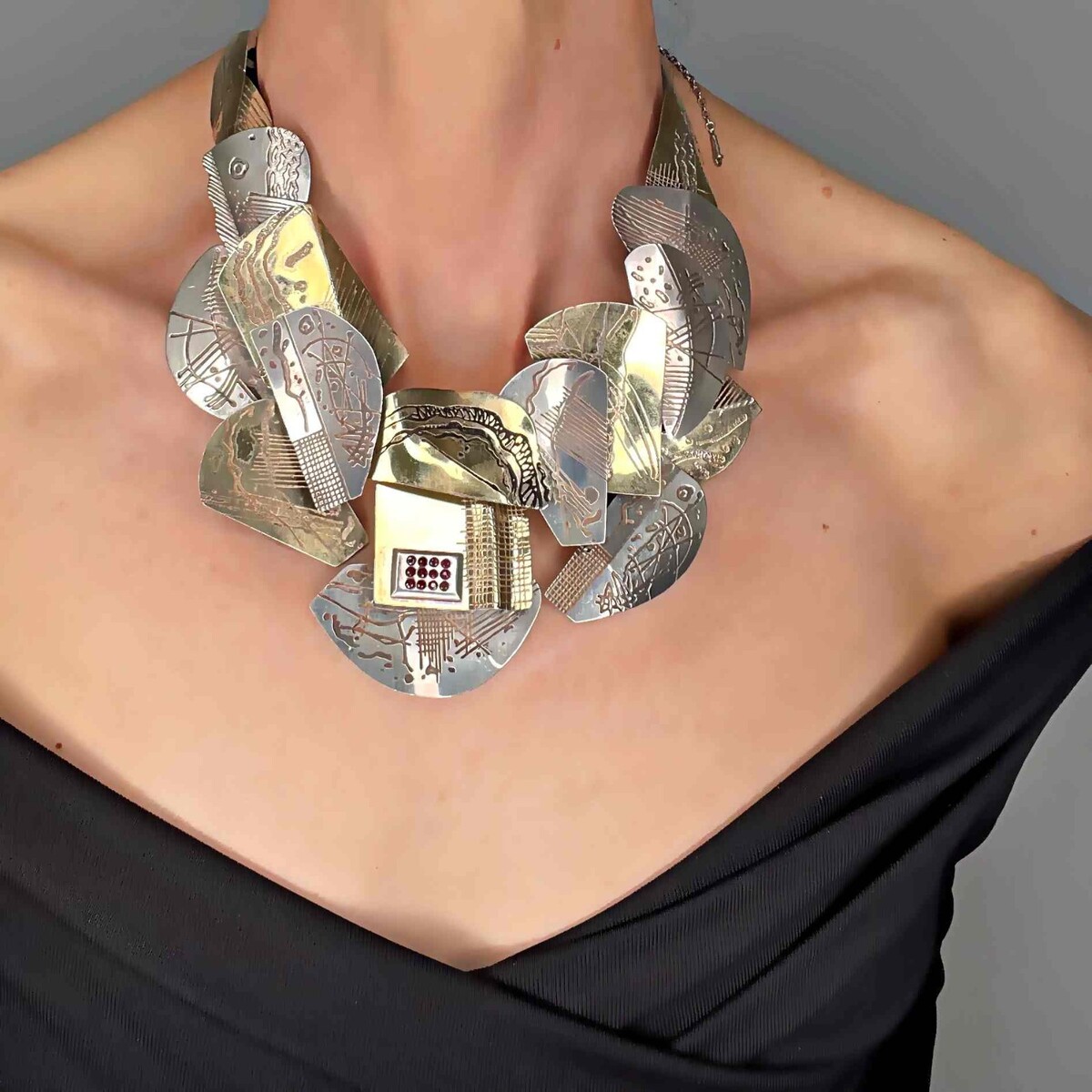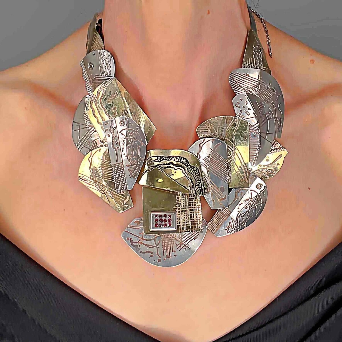 - LISTED ARTIST OOAK Silver Garnet Bib Necklace SIGNED DESIGNER, Make Offer!
