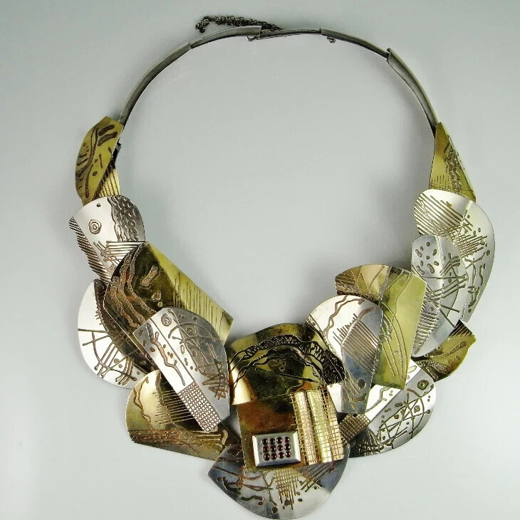 A Signed and hand made sterling silver modernist bespoke necklace by listed artist Calman Shemi.