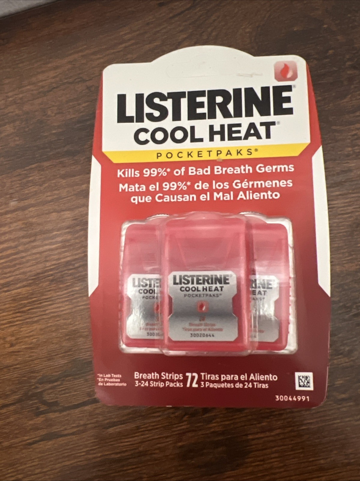 - Listerine Cool Heat PocketPaks Cinnamon Breath Strips 3 Pack = 72 Strips Total