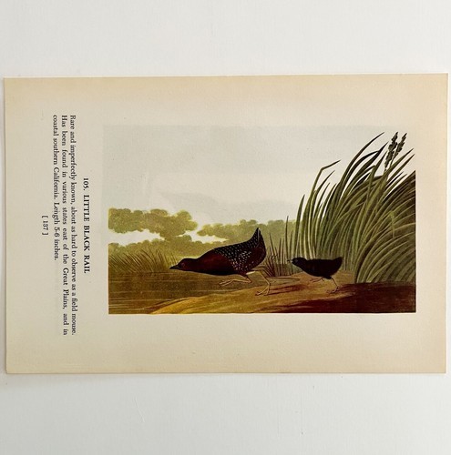 - Little Black Rail Bird 1950 Lithograph Print Audubon Nature First Edition DWU14B