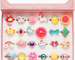 Little Girl Jewel Rings in Box, Adjustable, No Duplication, Girl Pretend Play and Dress up Rings (24 Lovely Ring)