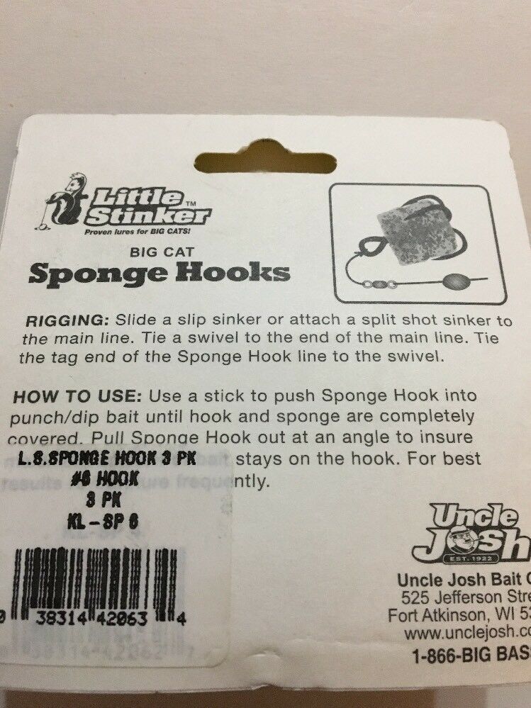 Little Stinker Big Cat Sponge Hooks (3 PK) BRAND NEW MODEL :KL-SP 6 (3 PK) UPC 038314420634 RARE - VINTAGE - COLLECTIBLE