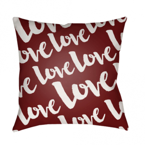 Product Care: Spot Clean Only, Line Dry Specifications Collection: Love Size: Medium Country of Origin: U.S.A. Construction: Woven Generic Material: Polyester Specific Material: Front: 100% Polyester, Back: 100% Polyester Fill Material: Poly Color: Red, White Shape: Square Embroidered: No Organic: No Gender: Unisex Handmade: No Outdoor Safe: Yes Assembly Required: No Eco-Friendly: No Weather Resistant: Yes Non-Toxic: No Warranty: Manufacturer's 30 Day Limited Dimension: 20 x 20 x 4 in. Weight: 4 lbs