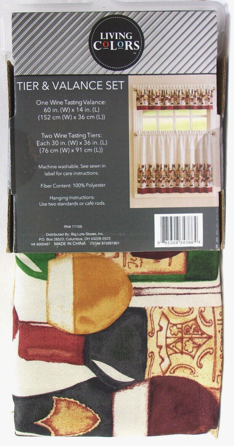 - Living Colors ~ 3-PC Cafe Tier & Valance Set "Wine Tasting"
