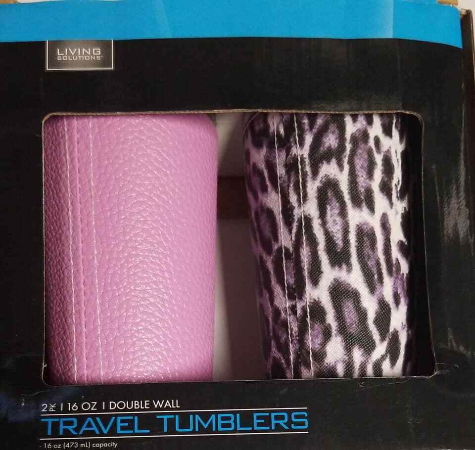- Living Solutions 2pk 16 oz Double Wall Pink/Leopard (LOC TUB L-36)