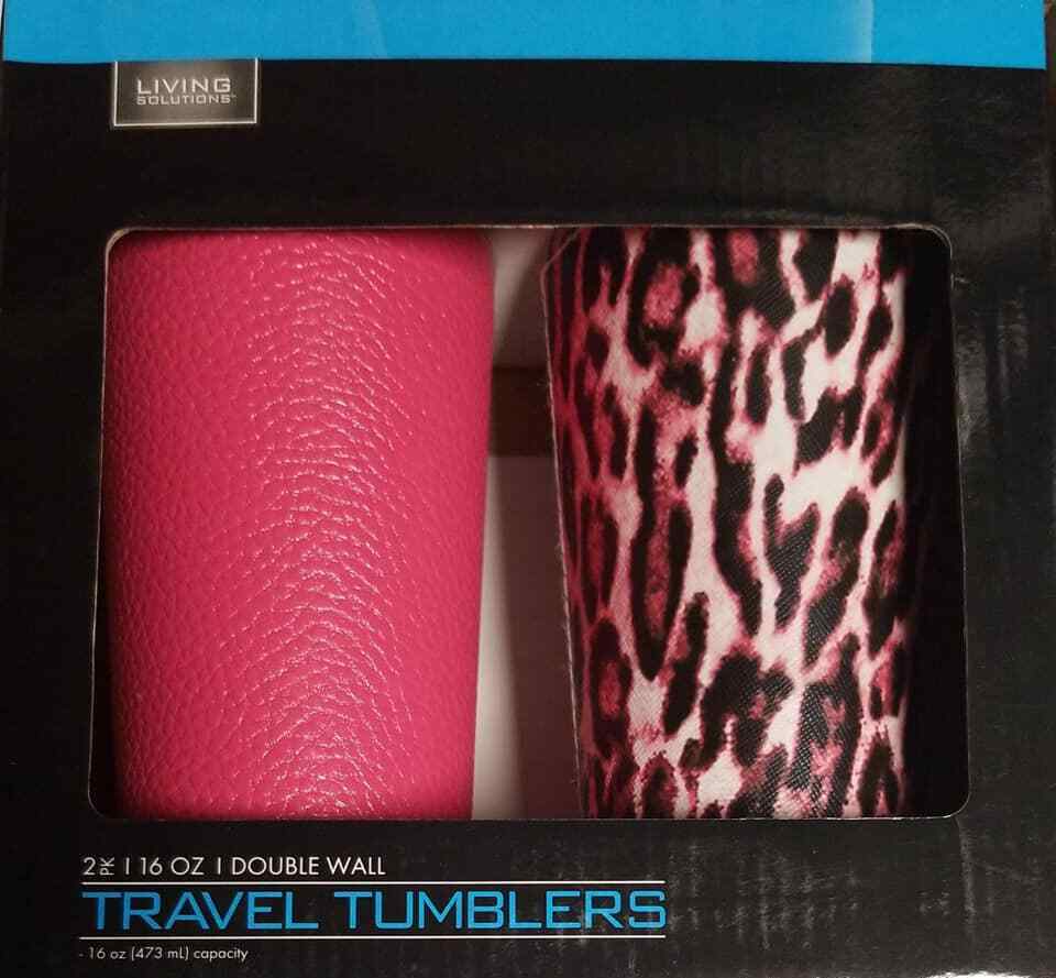 - Living Solutions 2pk 16 oz Double Wall Rose Pink/Leopard (LOC TUB L-36)
