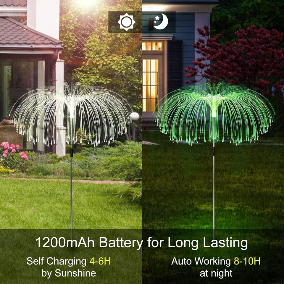 Create a magical garden glow with the LiyuanQ Solar Jellyfish Lights ? a unique 5-pack set featuring LED jellyfish-shaped lights with fiber optic tentacles. Designed for outdoor pathways, patios, and garden decor, these solar-powered lights automatically charge during the day and provide 14?40 hours of dazzling multicolour illumination at night.