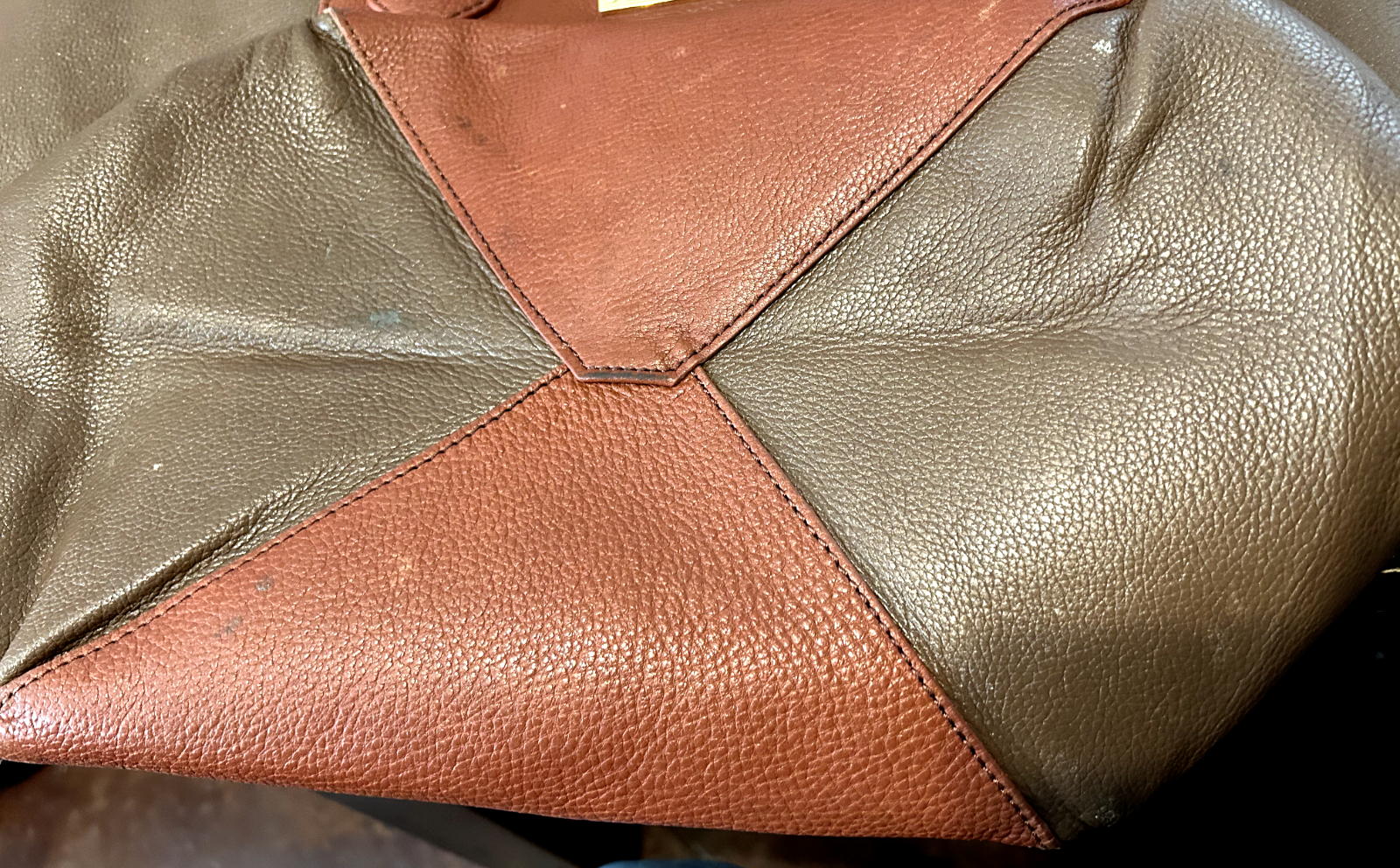 - Liz Clairborne Rust & Brown Leather w/PVC Trim Tote Bag (14 x 12 x 9 inches)