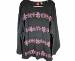 - Liz & Co Knit Pullover Sweater 90's Y2K Black Large Embroidered Flowers Colorful