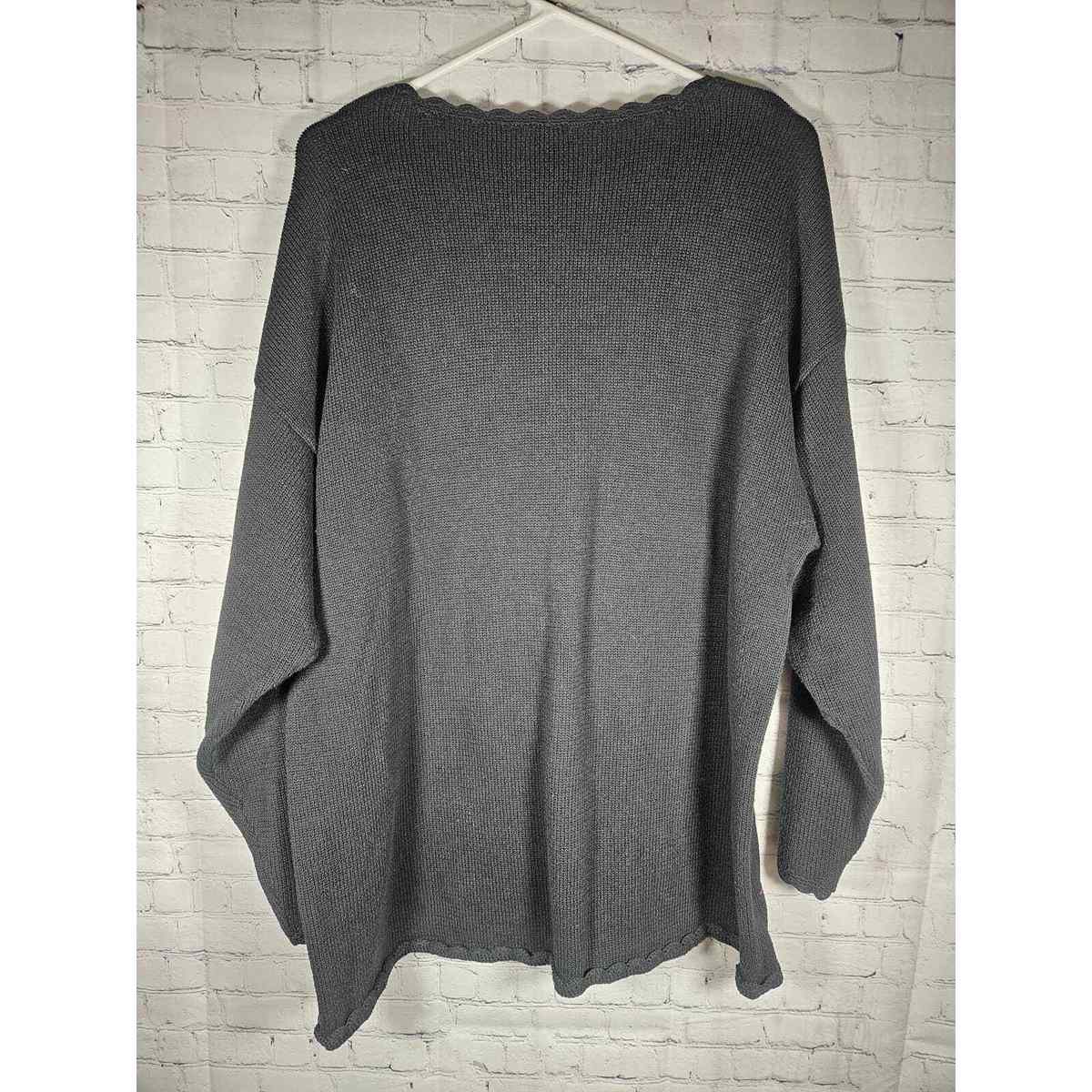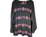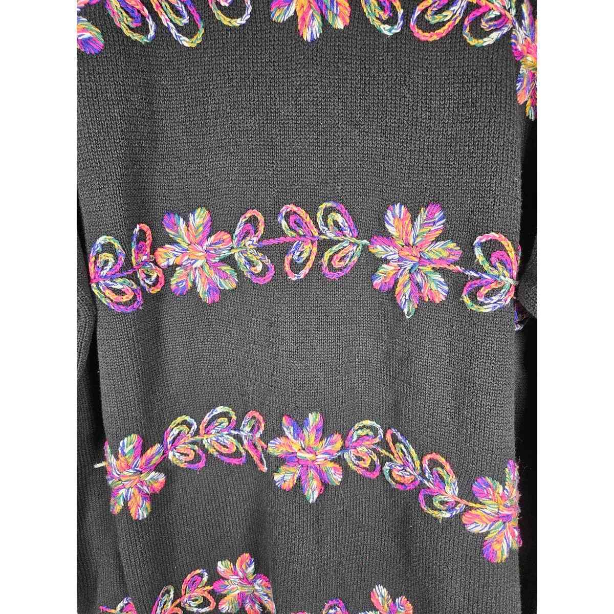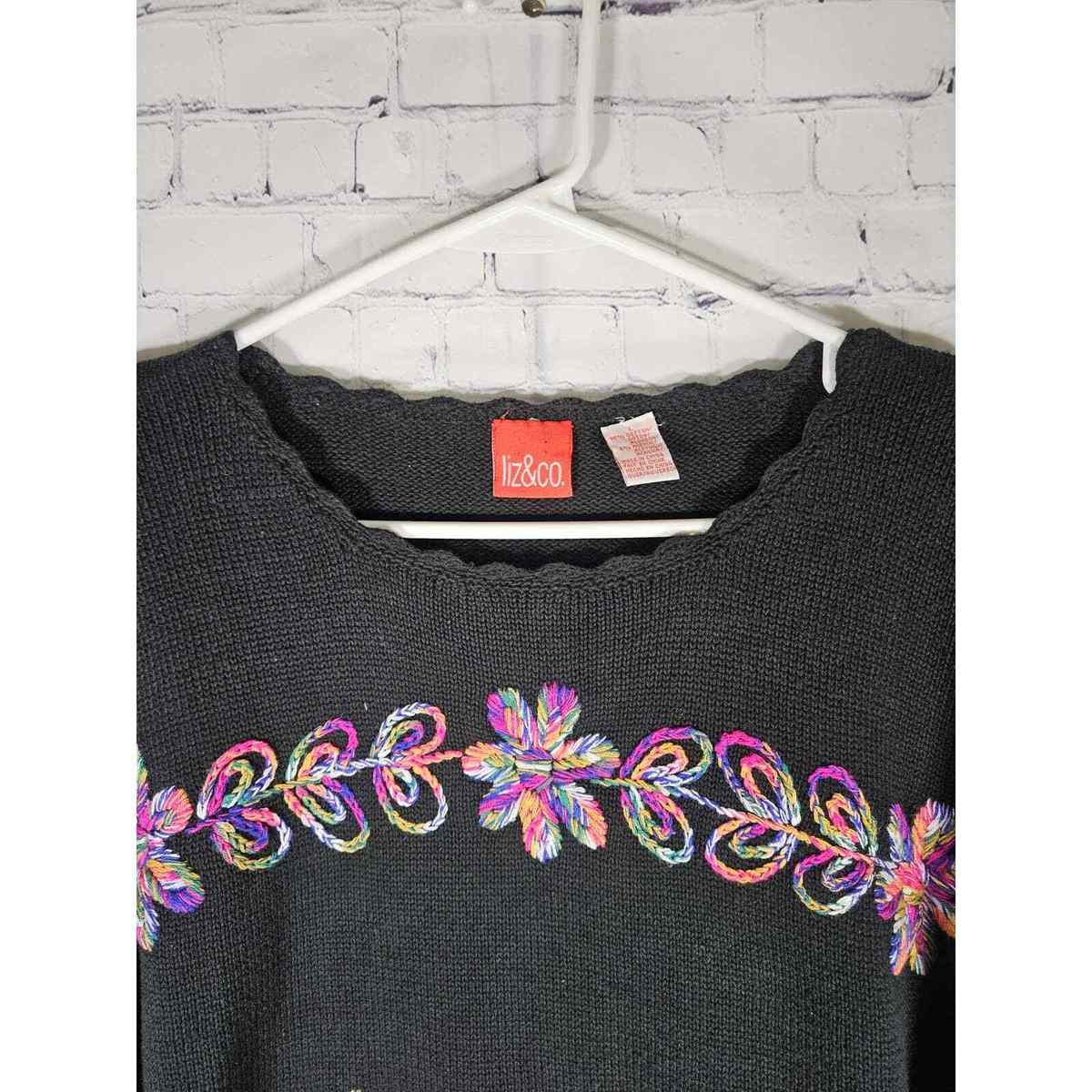 - Liz & Co Knit Pullover Sweater 90's Y2K Black Large Embroidered Flowers Colorful