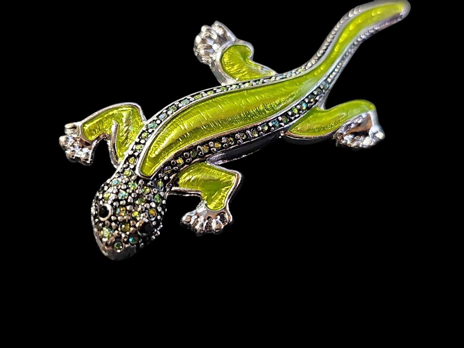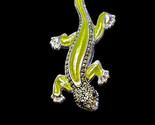 - Lizard Gecko Green Enamel Rhinestone Silver Tone Brooch Pin 3" Reptile Animal