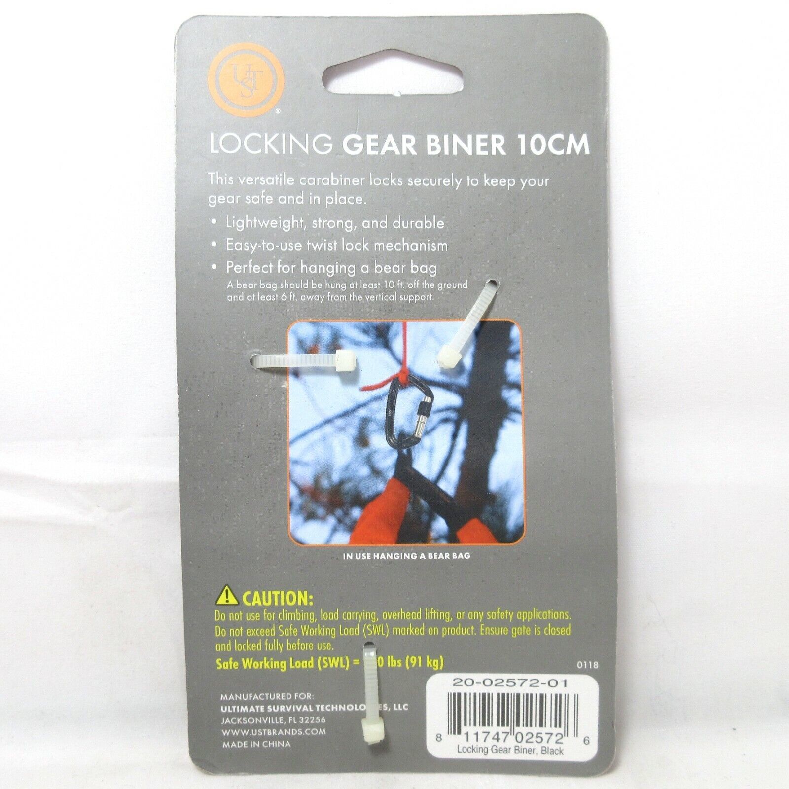 UST Locking Gear Carabiner 10 cm SWL 200 lbs (91 kg)