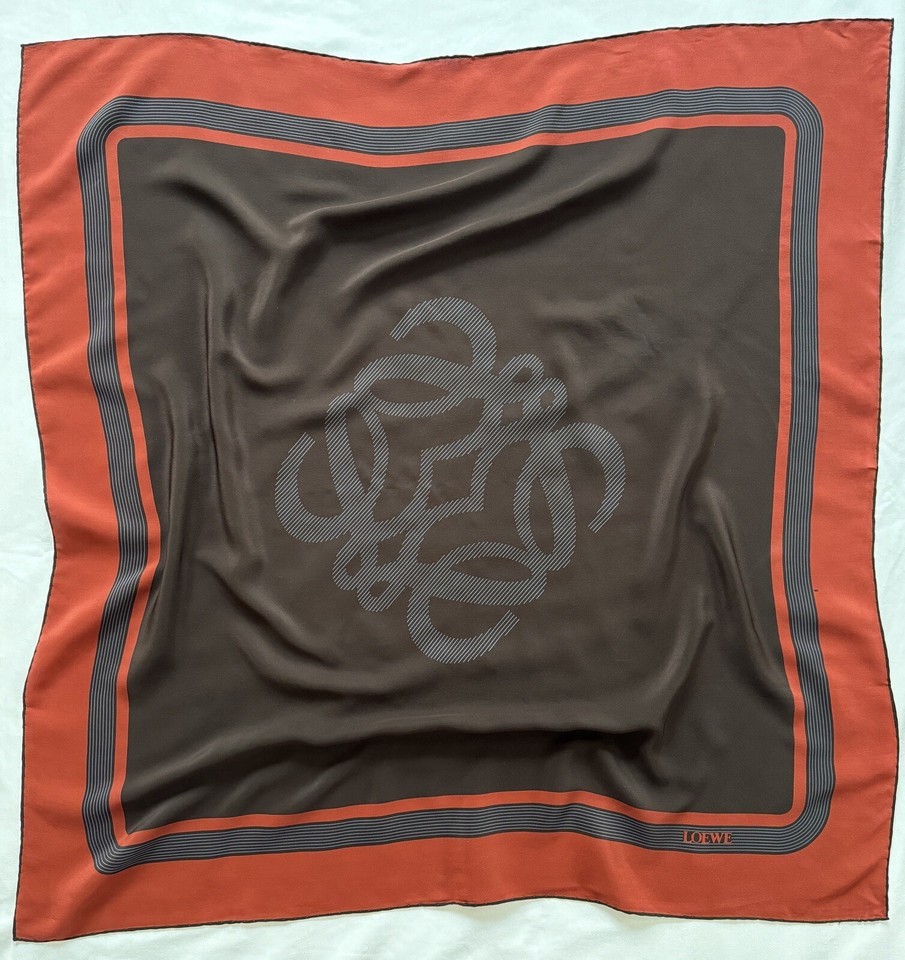 Loewe Silk Square 33.5?? Scarf Red Brown Logo