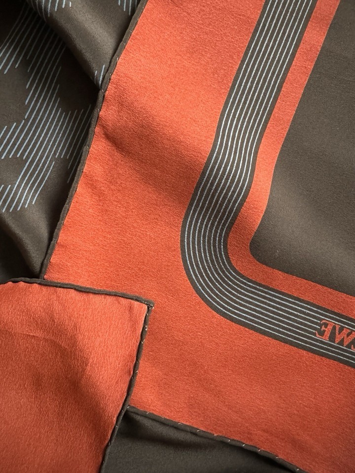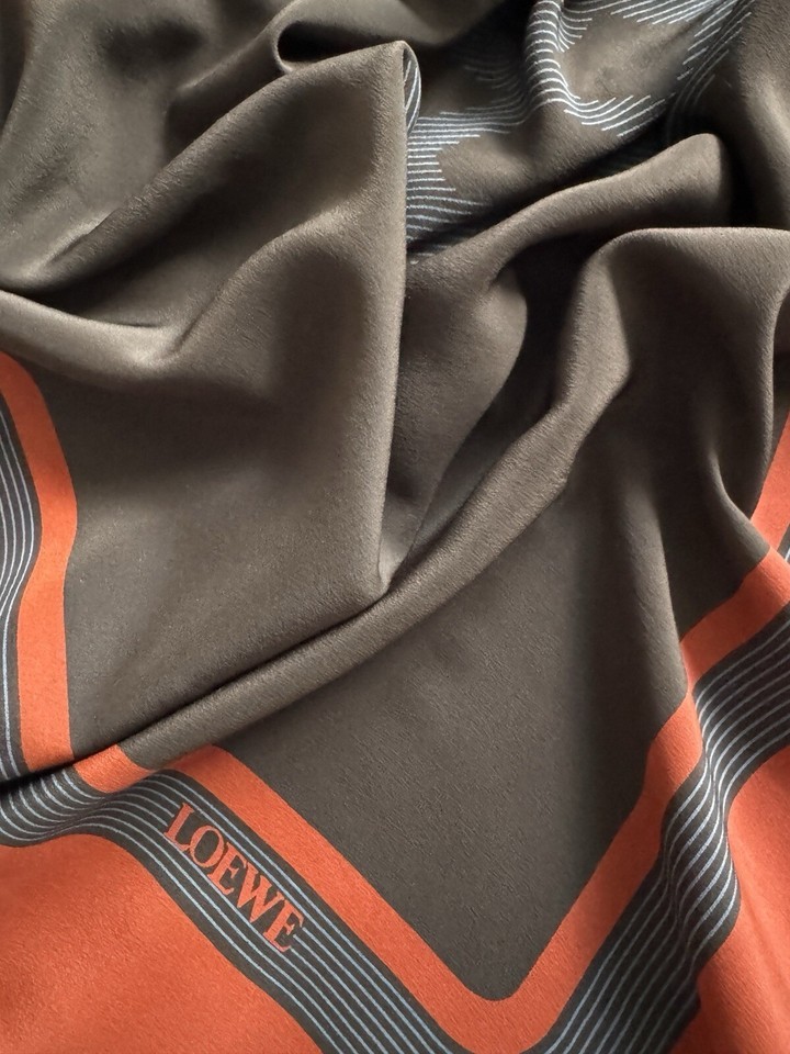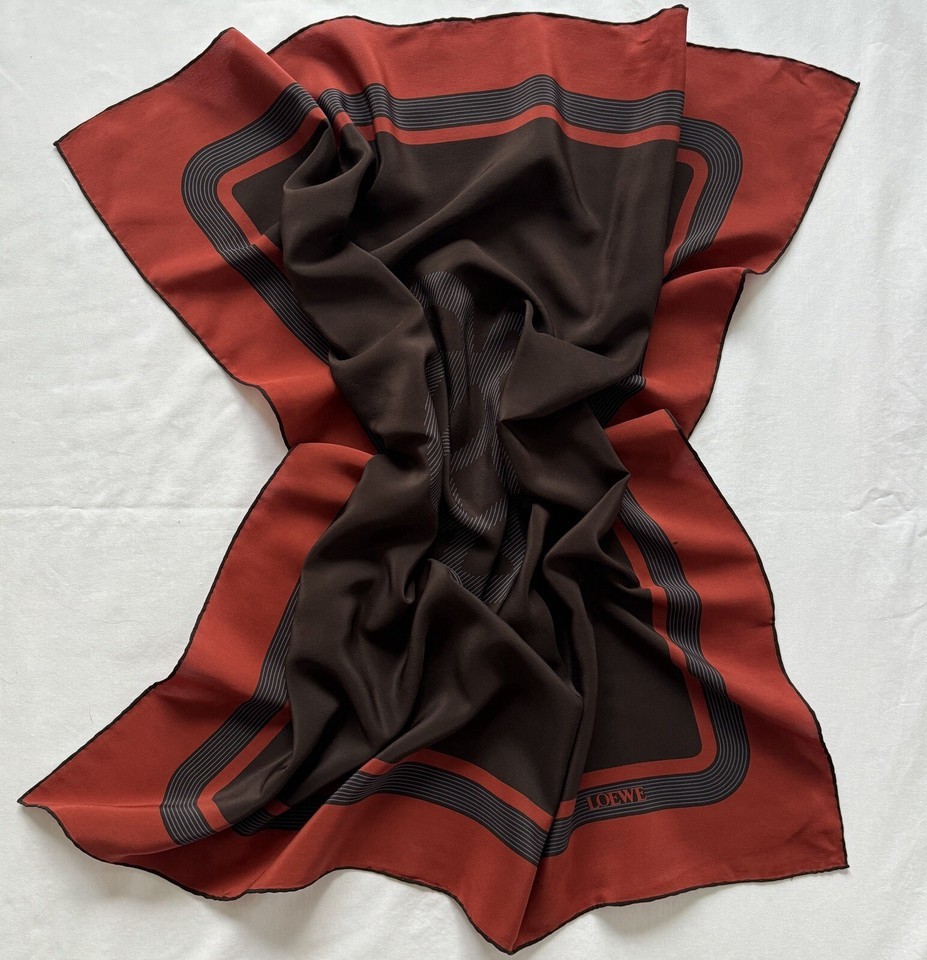 - Loewe Silk Square 33.5’’ Scarf Red Brown Logo