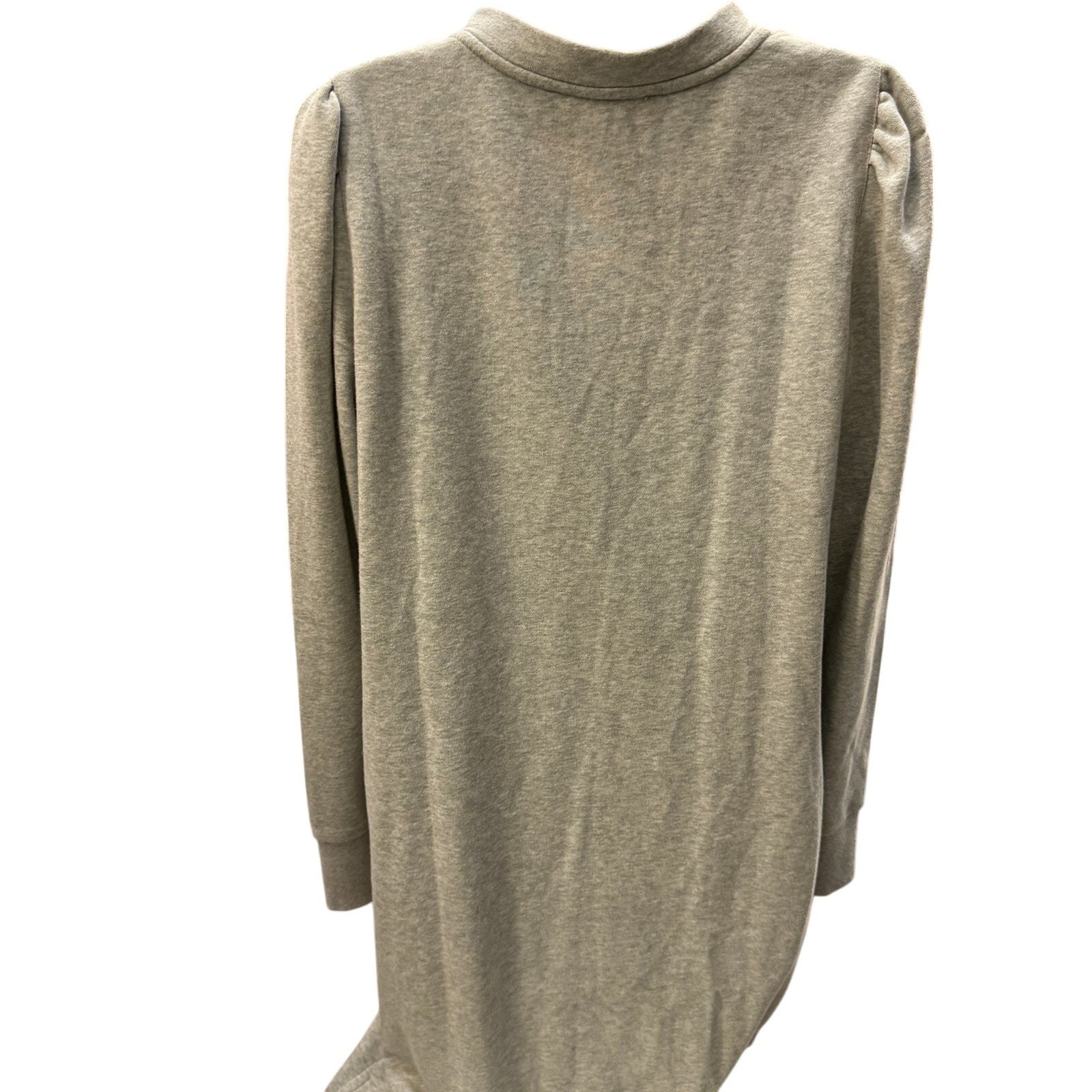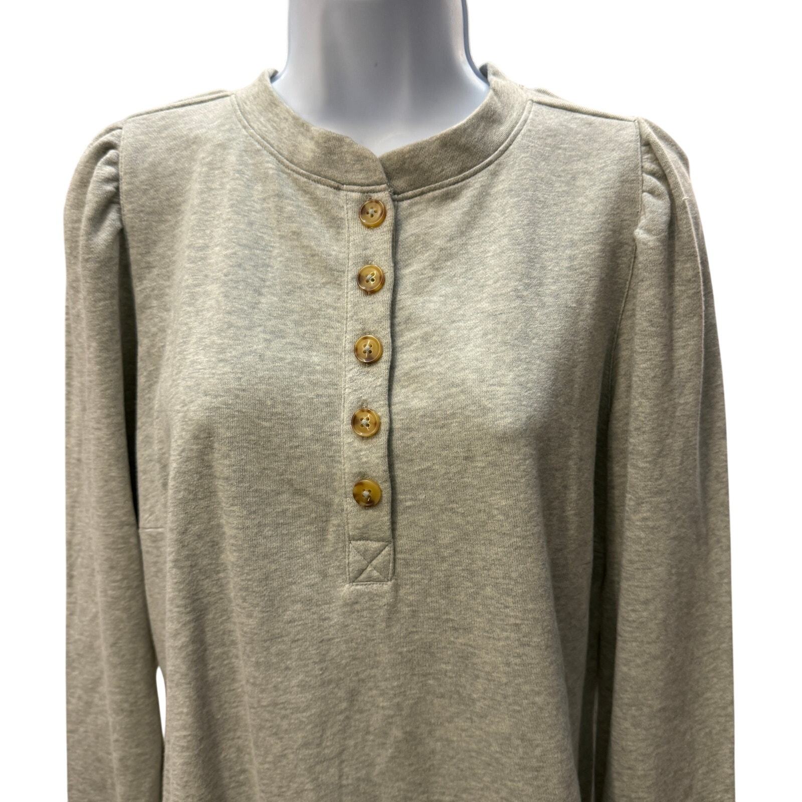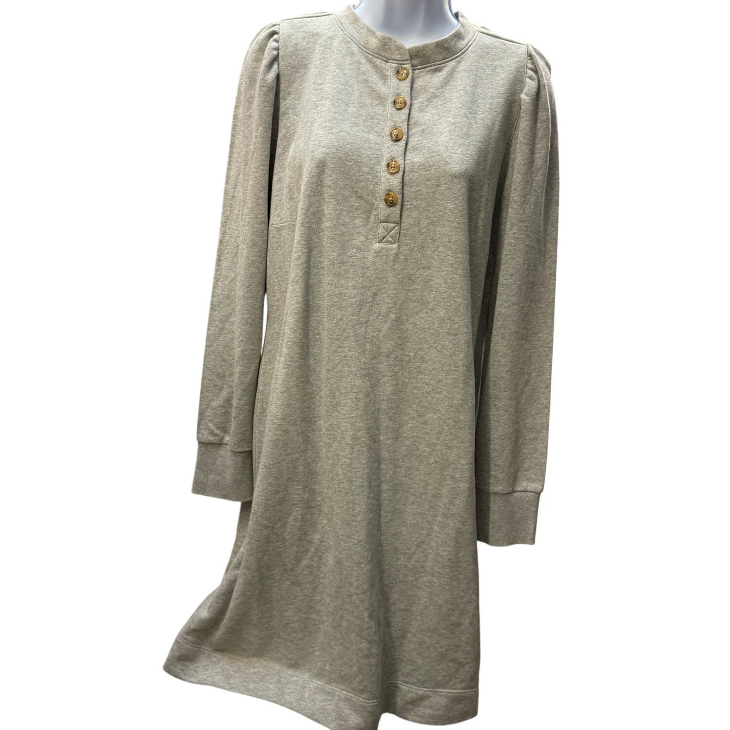 - LOFT WOMENS SZ L Shirred Sleeve Henley Shift Dress LAGENLOOK GRAY long sweater