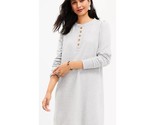 LOFT WOMENS SZ L Shirred Sleeve Henley Shift Dress LAGENLOOK GRAY long sweater