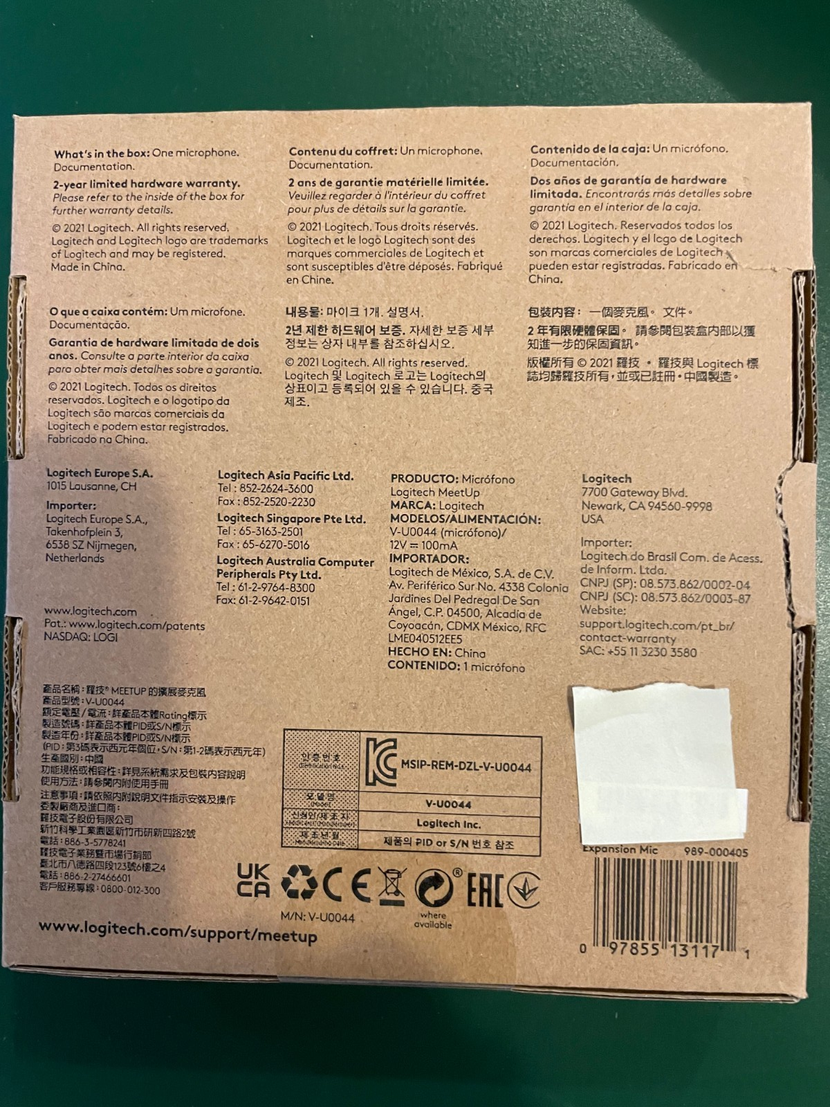- Logitech Expansion Mic Wired Microphone for Meetup 989-000405 NEW/SEALED