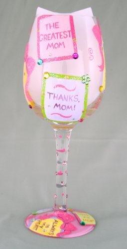 Product description: Lolita wine glass from the Wine Collection, love my wine recipe glasses featuring a handpainted original Lolita Yancey design on a 15 oz. tulip-shaped wine glass. . Its oversized 15 ounce capacity allows plenty of space for wine to breath, alllowing its full richness to unfold. Lolita recommends hand washing glass.