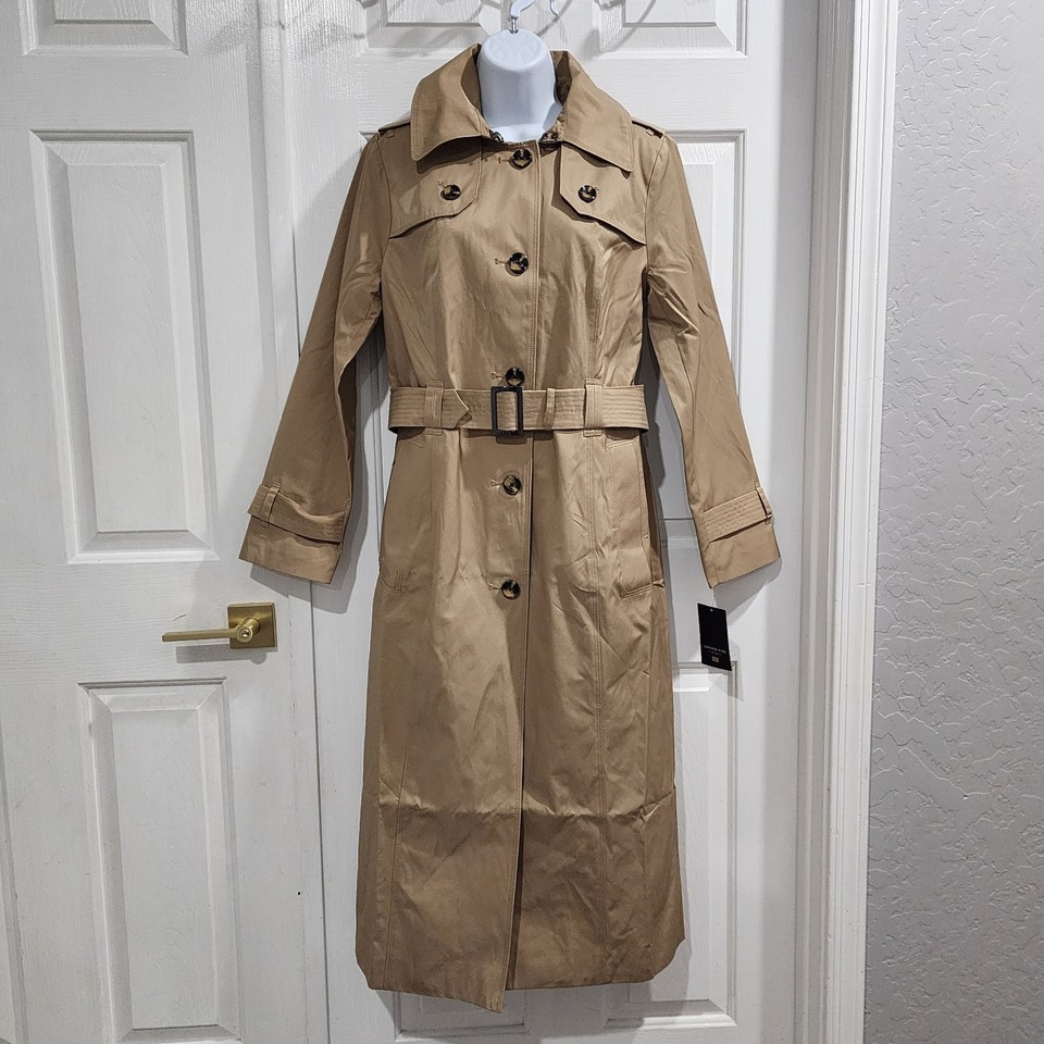 - London Fog Women's Single Breasted Hooded Long Trench Coat, British Khaki, S