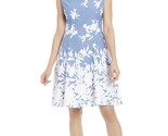 London Times Women's Dresses Perfect Versatile Scuba Crepe Fit Flare Dress Event Guest of Occasion Office Career, Sky/Ivory, 12