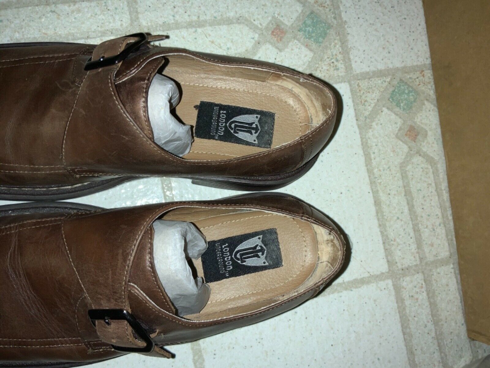 London Underground Bower Mens Oxford Shoes Size 10 Brown Buckle Leather Slip-On