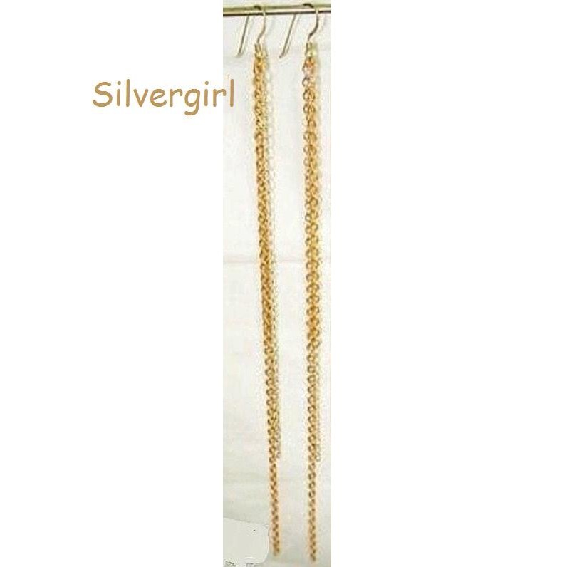 long dangling gold plate chain earrings with gold plate ear hooks and