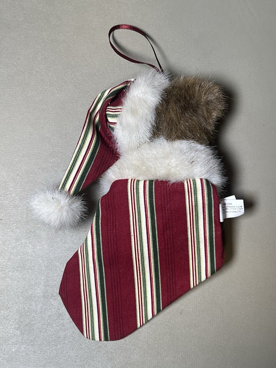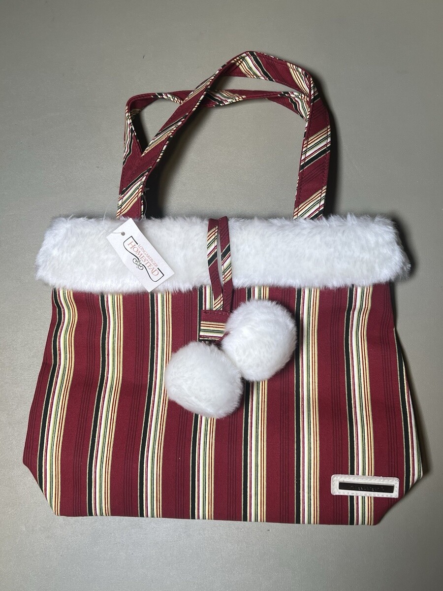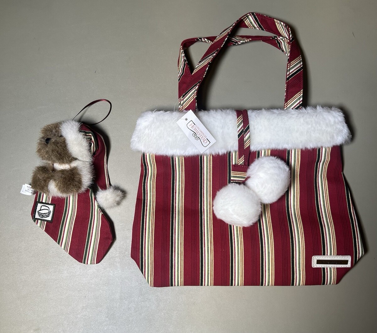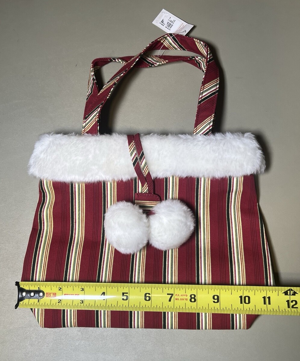 Longaberger Homestead Holiday Striped Tote Bag W/ Holiday Striped Mini Stocking
