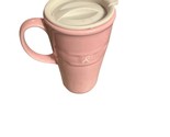 Longaberger Pink Breast Cancer Awareness Pink Ceramic Travel Mug 16 Oz Cup Lid. Condition is Used. Shipped with USPS Ground Advantage.