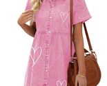 - LookbookStore Pink Heart Love Print Babydoll Jean Dress Pink XS Size