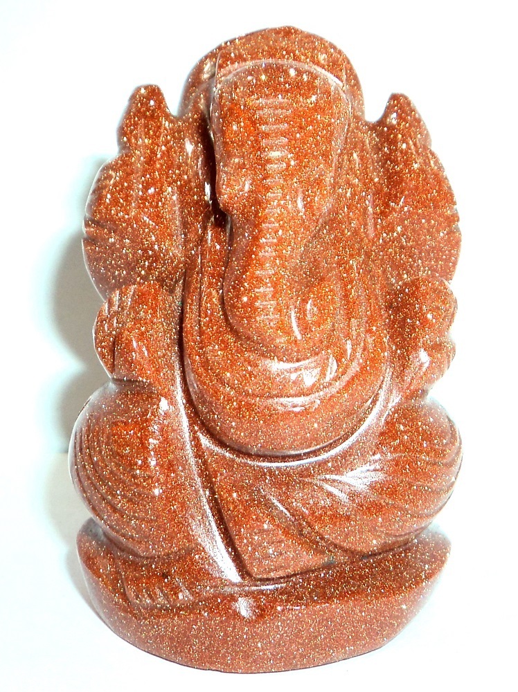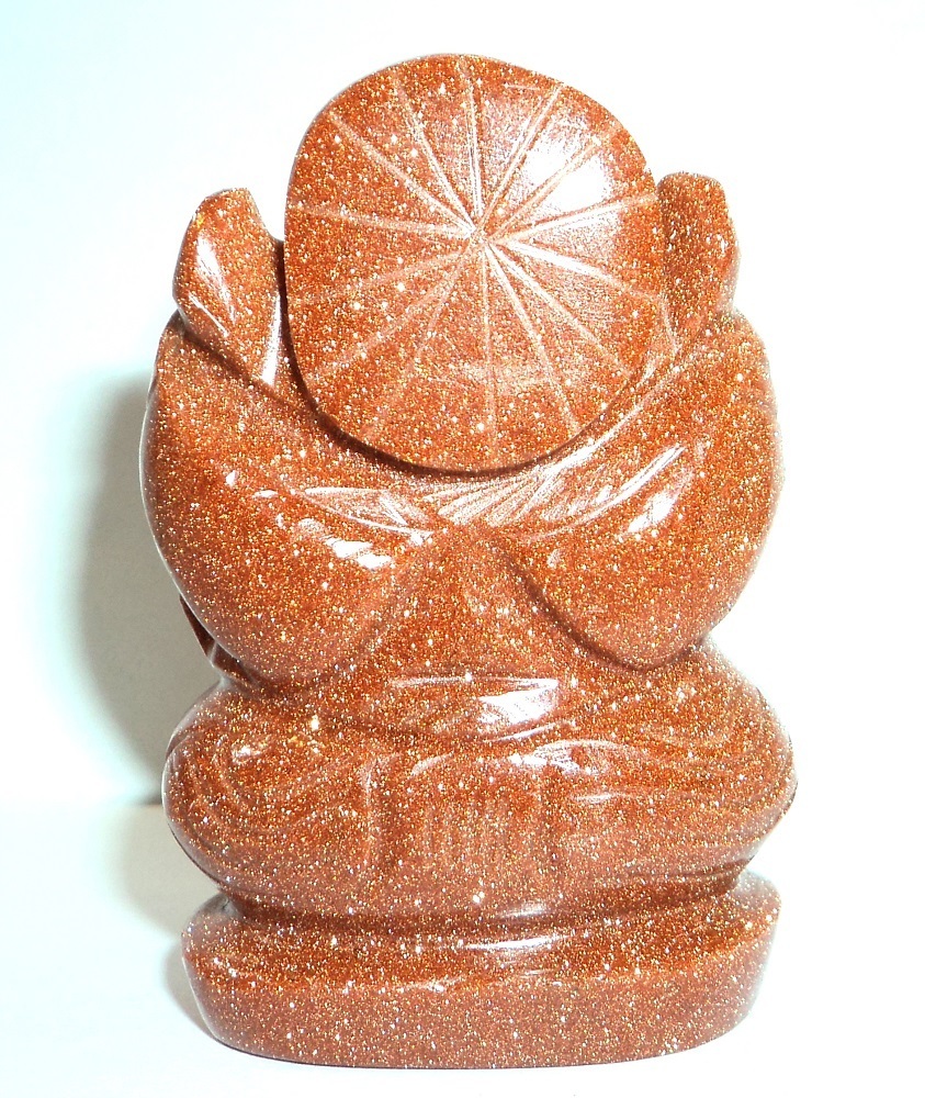 In this Idol, He is carved in natural glittering sunstone. Sunstone revitalizes positive attitude and fills with energy. It is the stone of creativity.