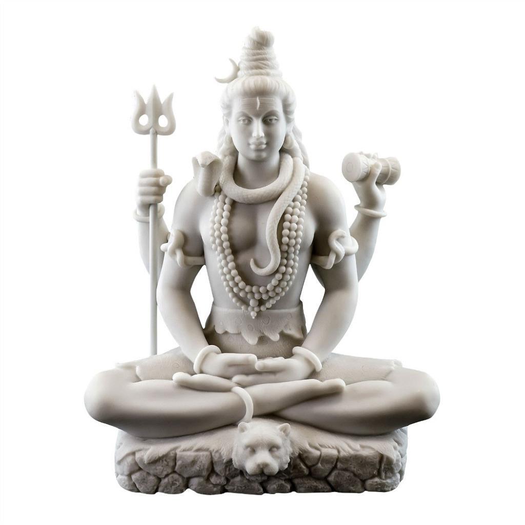 - LORD SHIVA STATUE 8" Hindu Indian God White Marble Finish Resin Seated Lotus NEW