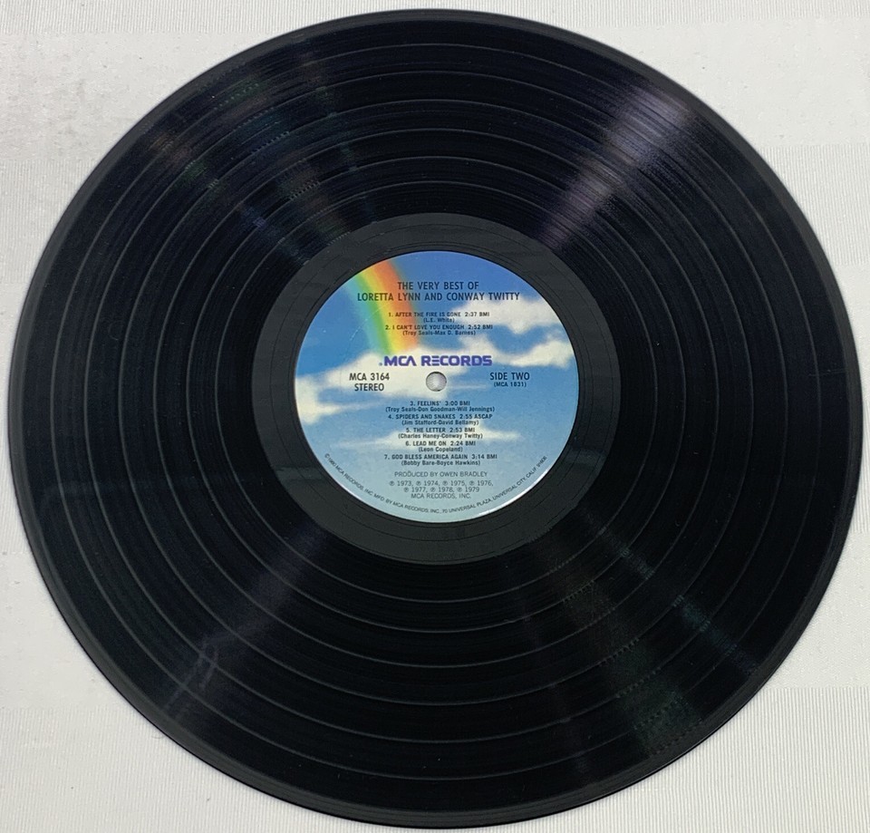 This LP features the best of Loretta Lynn and Conway Twitty from their time at Decca records in the 1970s. With hits like "After the Fire is Gone" and "Louisiana Woman, Mississippi Man," this multicolor vinyl LP is a must-have for any country music fan. The cardboard sleeve and original cover are in mint condition (M), perfect for collectors.