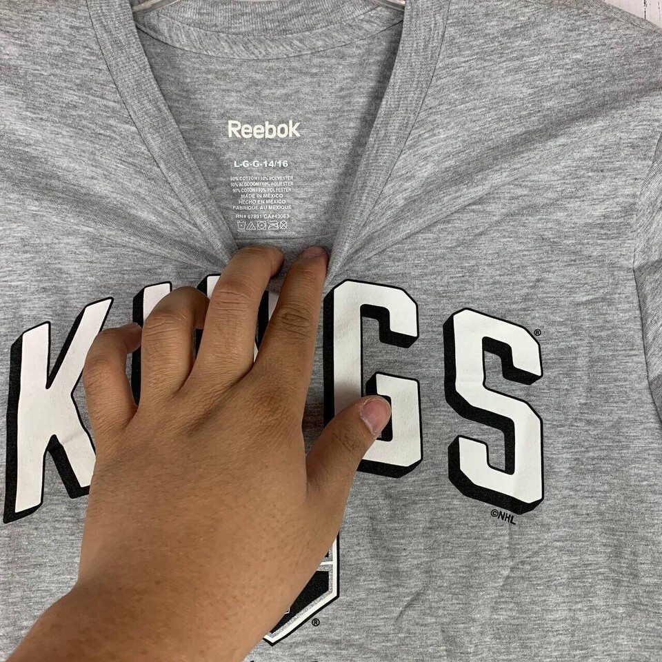 - Los Angeles LA Kings NHL Reebok Large Gray Tshirt New Youth