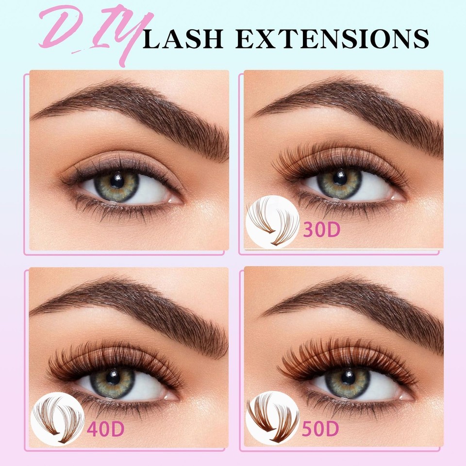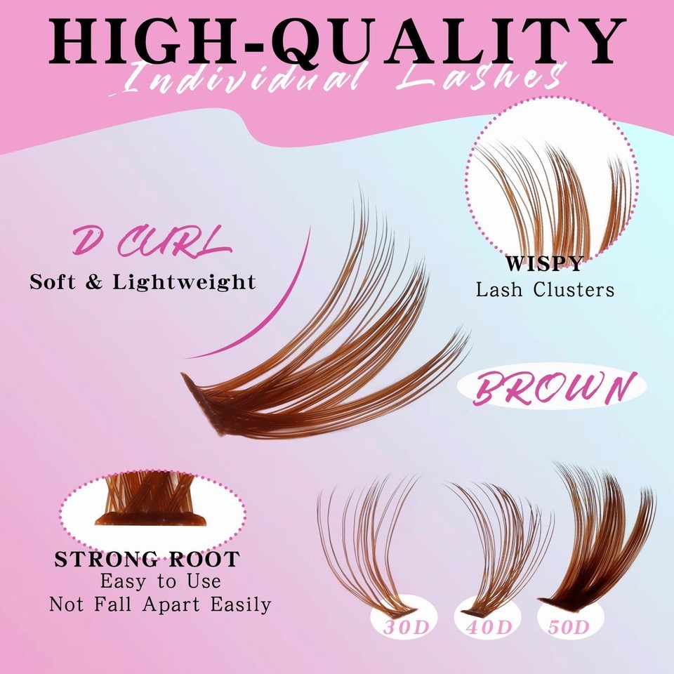 Brown DIY Lash Extensions: These individual lashes are D curl and brown color, if some girls are lighter hair colors, the brown lashes clusters is a better choice than the balck. And you can DIY lash extensions at home, no longer need salon to achieve it.