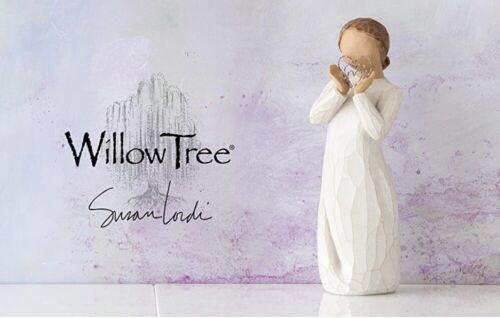 Willow Tree sculptural art forms beautifully express love, closeness, healing, courage, hope? all the emotions of a life well lived. Artist Susan Lordi hand carves the original of each figure from her studio in Kansas City Missouri. Pieces are cast from her original carvings, and individually painted by hand. Expression is revealed through gestures only? a tilt of the head, placement of the hands, a turn of the body. The simplicity of form and absence of facial features signify Willow Tree. It is Susan?s hope that these pieces be meaningful to both giver and receiver.